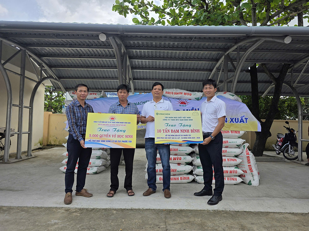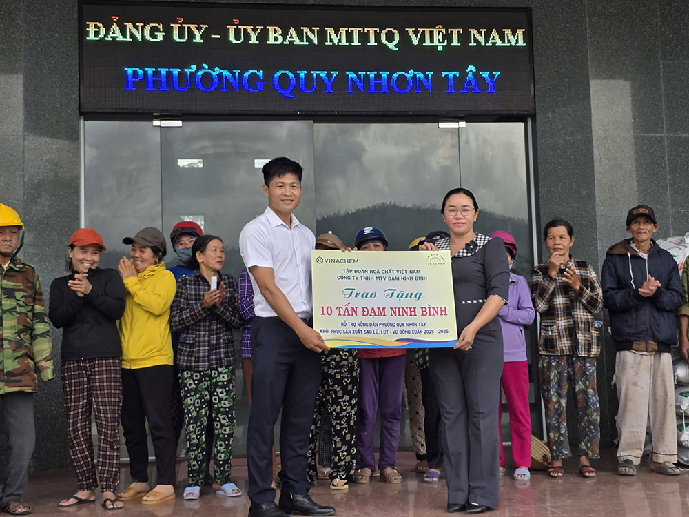 Nhằm chung tay giúp đỡ người dân khắc phục hậu quả bão lũ và chuẩn bị cho vụ mùa Đông Xuân 2025-2026, Công ty TNHH MTV Đạm Ninh Bình đã phối hợp cùng Mặt trận Tổ quốc (MTTQ) các cấp tổ chức trao tặng dòng sản phẩm phân đạm xanh RTE Ninh Bình chất lượng cao.