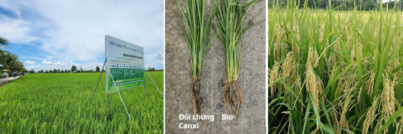 Việc cải thiện rõ rệt môi trường đất (pH tăng, giảm độc tố phèn và hữu cơ) cùng với việc cung cấp dinh dưỡng cân đối (từ Bio-Canxi và bộ sản phẩm Bio Lúa 1&2) đã tạo điều kiện tối ưu cho cây lúa phát triển. Kết quả là năng suất thực tế ở nghiệm thức sử dụng Bio-Canxi tăng tới 12.5% (tương đương 0.93 tấn/ha) so với đối chứng theo tập quán nông dân. Mức tăng năng suất này là kết quả tổng hợp của việc bộ rễ khỏe mạnh hơn, cây đẻ nhánh tốt hơn, tăng số hạt chắc trên bông và trọng lượng hạt (như các chỉ tiêu chi tiết trong báo cáo thử nghiệm gốc), khẳng định hiệu quả vượt trội của giải pháp phân bón Bio.