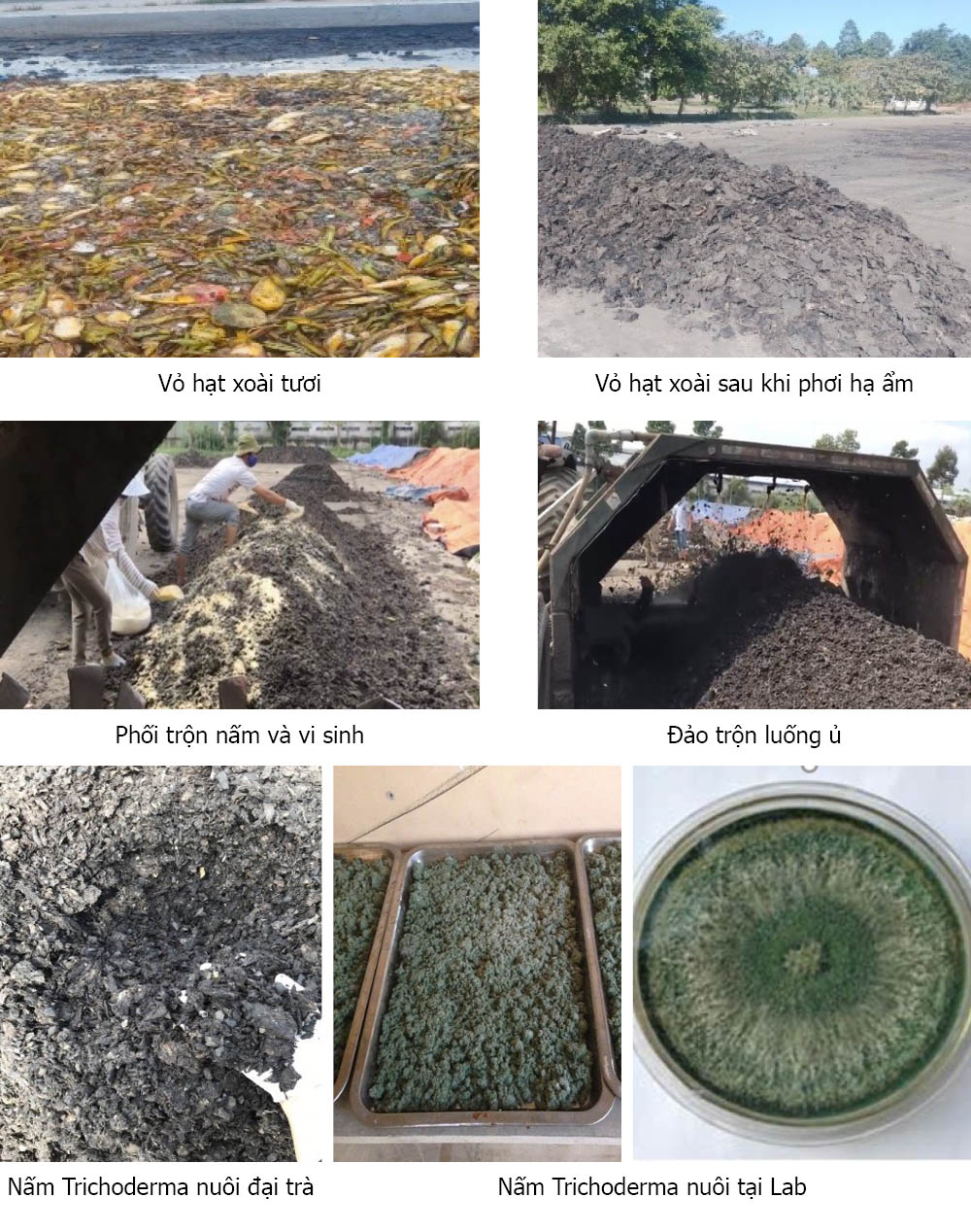 - Thử nghiệm thành công phân hữu cơ từ vỏ trái cây: Các thử nghiệm ban đầu cho thấy vỏ và hạt xoài, đu đủ có thể được ủ thành công để sản xuất phân hữu cơ chất lượng tốt, tương đương hoặc thậm chí có những ưu điểm hơn so với phân từ xác mía.